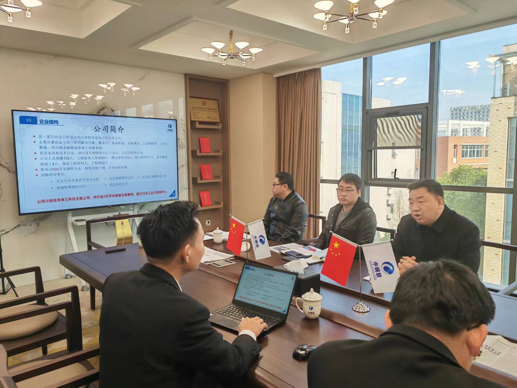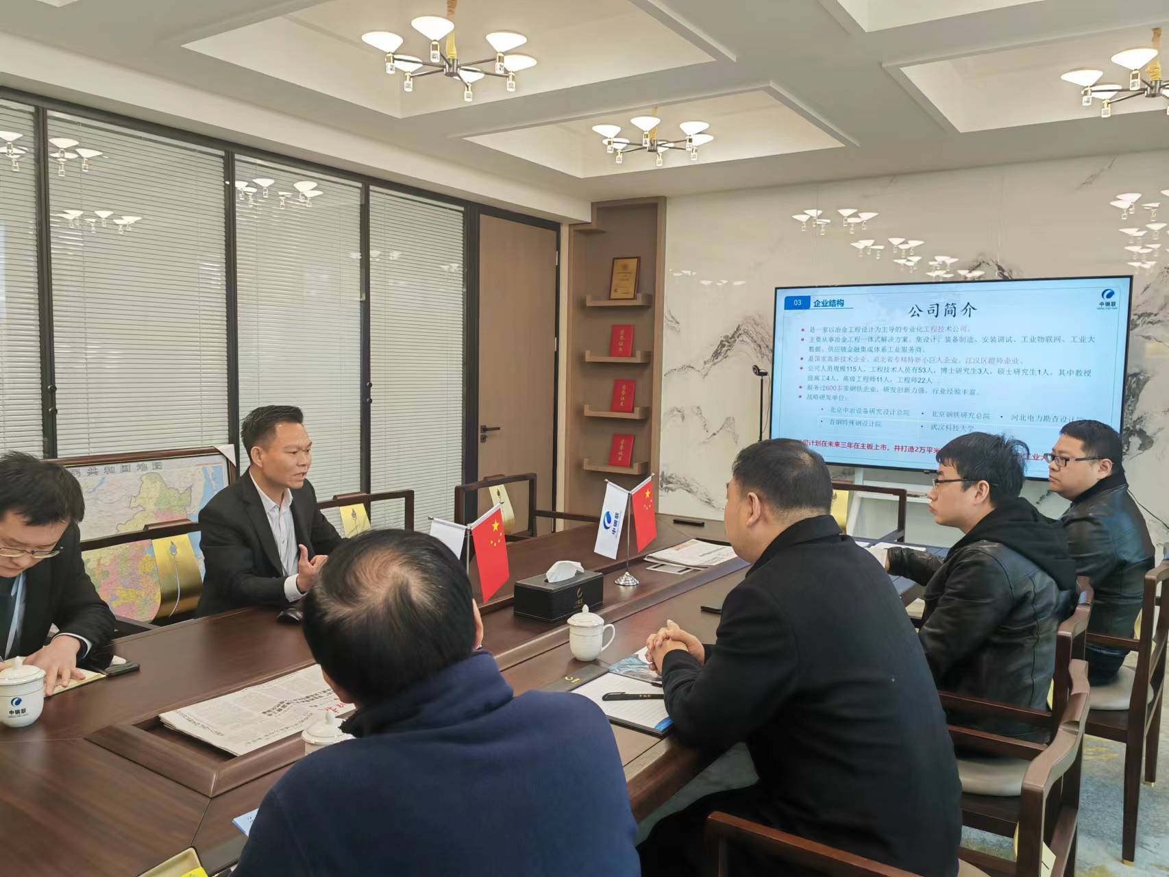 2 月20 日上午,武漢市江漢經(jīng)濟(jì)開發(fā)區(qū)管委會(huì)楊棟主任一行,前來湖北中鋼聯(lián)冶金工程有限公司實(shí)地調(diào)研交流,中鋼聯(lián)董事長(zhǎng)符乃良、副總經(jīng)理金巍等人進(jìn)行了熱情接待。