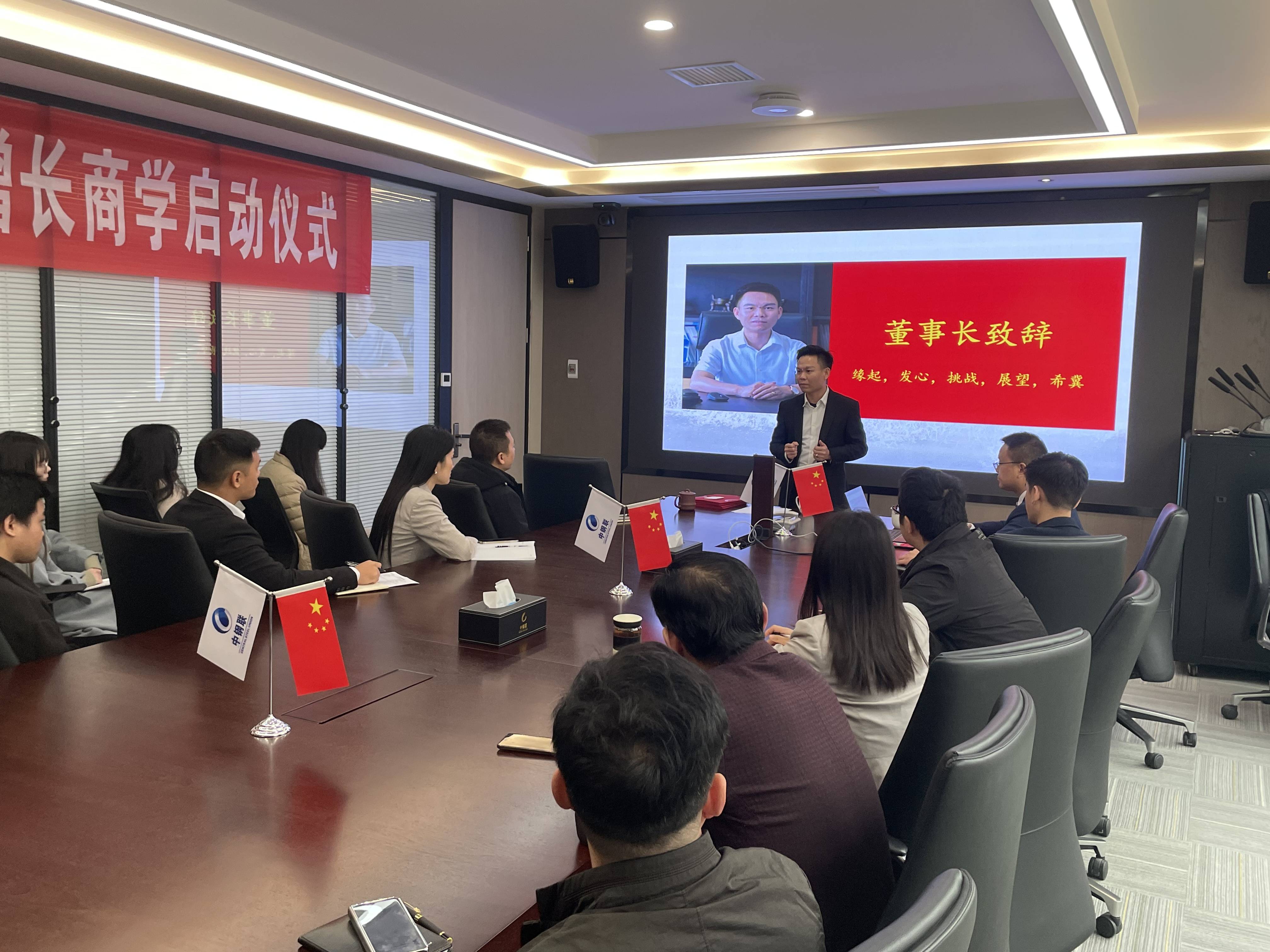 啟動儀式正式開始,首先由公司董事長致辭,董事長講述了成立中鋼聯增長商學培訓中心的發心,表示企業的長遠發展離不開員工的成長,希望通過增長商學的培訓,每個人能夠從中學有所成,學有所用,找出自己的長處,實現公司和員工的雙贏。
